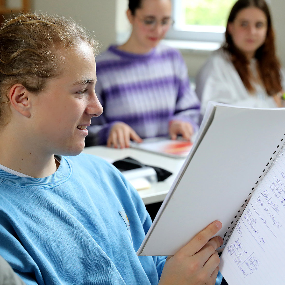 Zur Schulung des mündlichen Ausdrucksvermögens der Jugendlichen soll eine ausgeprägte Referats- und Diskussionskultur dienen, der im Unterricht ein hoher Stellenwert zukommt. Außerdem soll durch biographische Darstellungen und Erschließungen von Literatur die eigenständige Urteilsbildung der Schülerinnen und Schüler gefördert werden, aber auch die Fähigkeit, sich im Mündlichen und Schriftlichen auszudrücken. Durch das Medium der Literatur ist so eine tiefgehende Begegnung mit eigenen Existenzfragen ebenso möglich wie das Erleben entfernter und zunächst fremd erscheinender Gedanken-, Gefühls- und Formwelten.