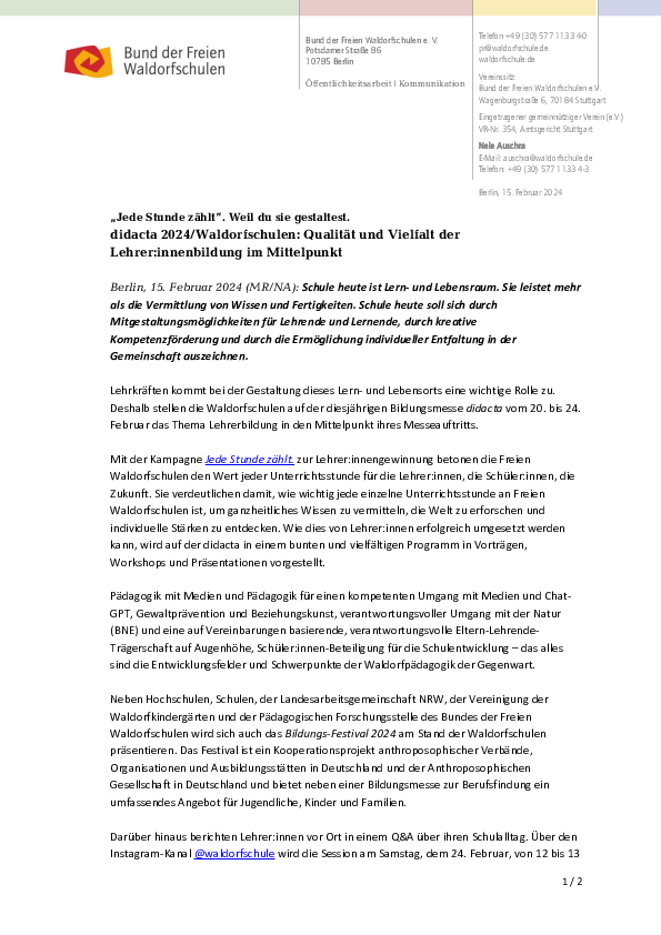 Kontakt: Presse- und Öffentlichkeitsarbeit im Bund der Freien Waldorfschulen e.V., pr@