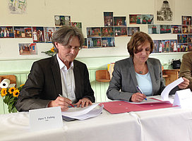 Neumünster/Hamburg/Stuttgart, den 23. Juni 2016/VS/CMS/FY. Die <link http: www.waldorf-sh.de einen externen link in einem neuen>Landesarbeitsgemeinschaft der Freien Waldorfschulen in Schleswig-Holstein (LAG) hat am 23. Juni 2016 an der <link http: www.waldorf-neumuenster.de aktuelles einen externen link in einem neuen>Freien Waldorfschule Neumünster mit der Ministerin für Schule und Berufsbildung, Britta Ernst, eine Vereinbarung zur Zusammenarbeit bei der Inklusion unterzeichnet. Die gemeinsame Unterstützung von Schüler*innen mit den Förderschwerpunkten Sehen, Hören und körperlich-motorische Entwicklung ist der Kernpunkt der Vereinbarung. Somit können nun auch die Kinder und Jugendlichen der schleswig-holsteinischen Waldorfschulen und Heilpädagogischen Einrichtungen die Fachkompetenz der staatlichen Landesförderzentren in Anspruch nehmen.