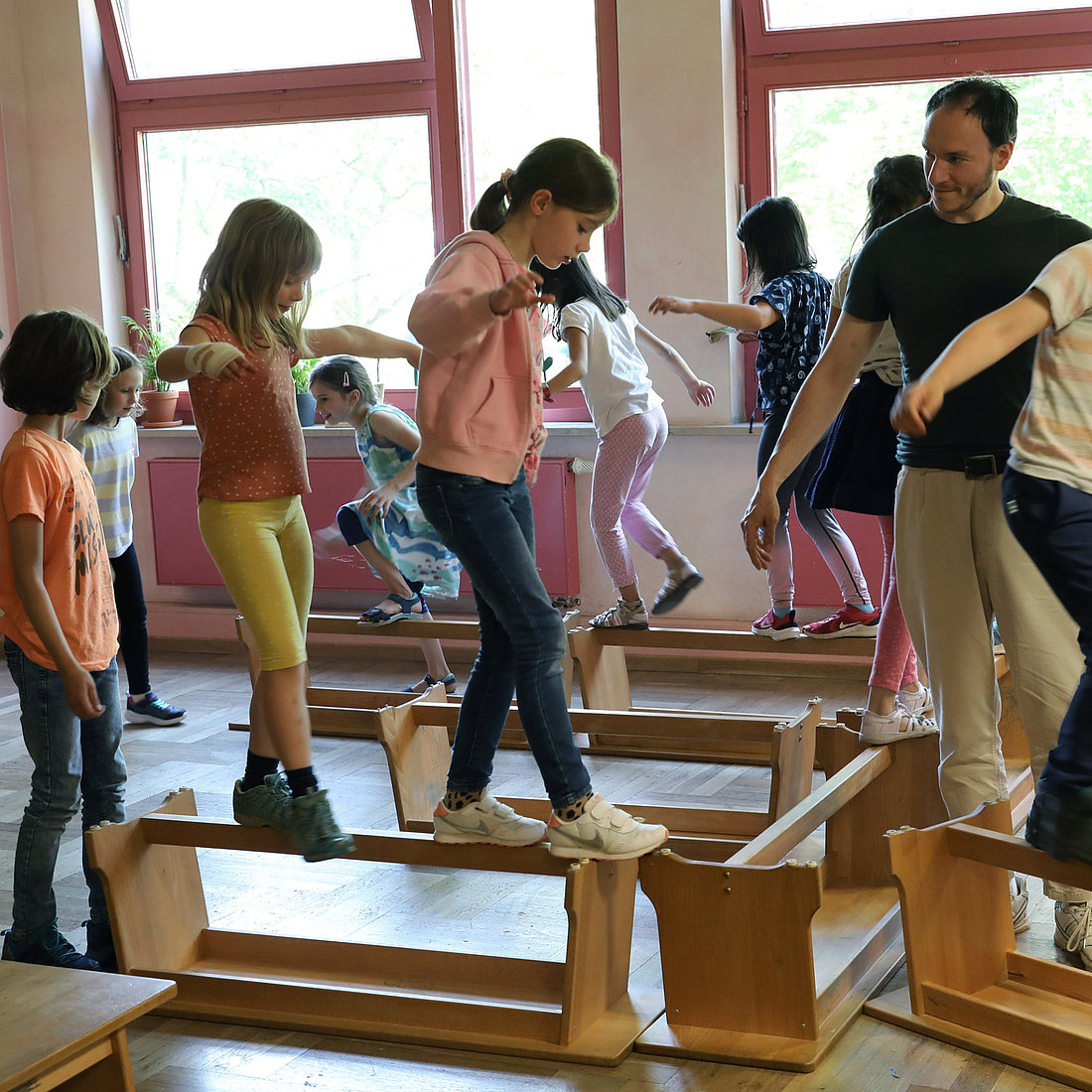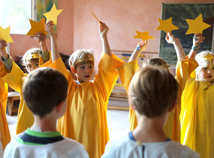 Jeden Morgen werden die Kinder von ihrem Klassenlehrer in ihrem eigenen, vertrauten Klassenraum mit Handschlag begrüßt. Wenn sich die Klassentür hinter ihnen schließt, tauchen sie gemeinsam in eine reiche Welt des Lernens ein, die ihr Bedürfnis nach lebendiger Bewegung ebenso aufgreift wie ihre manchmal noch träumende Anteilnahme an den Bildern und täglichen Erzählungen ihres Klassenlehrers oder ihrer Klassenlehrerin.