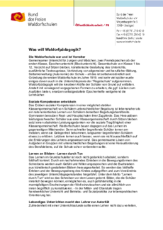 Gemeinsamer Unterricht für Jungen und Mädchen, zwei Fremdsprachen ab der ersten Klasse, Epochenunterricht (Blockunterricht), Gesamtschule von Klasse 1 bis 12, Verzicht auf Sitzenbleiben, künstlerische Gestaltung des Unterrichts, ausführliche Textzeugnisse, Verbindung von allgemeiner und beruflicher Bildung, Selbstverwaltung (Autonomie) der Schule – all das ist selbstverständlich seit Gründung der ersten Waldorfschule im Jahre 1919; erst sehr viel später wurde einiges davon auch in die Unterrichtspraxis der „Regelschule” aufgenommen.
