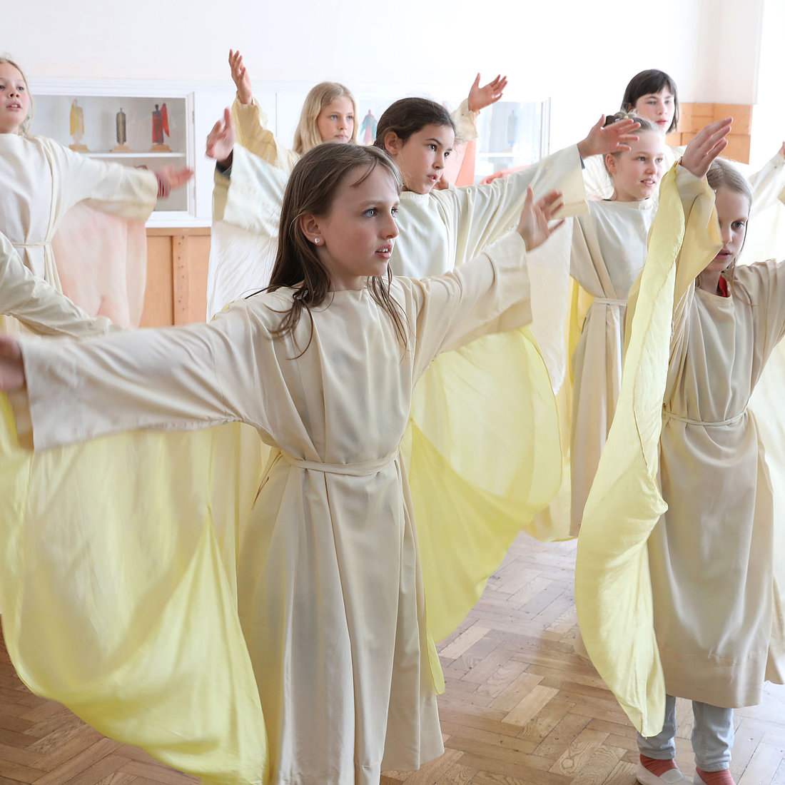 - Für den Künstlerischen Abschluss wird ein Eurythmie- oder Musikprogramm einstudiert, in dem die Schüler:innen – in der Gruppe oder einzeln – ihr Können in dem jeweiligen künstlerischen Fach bei einer Präsentation zeigen. Wie beim Klassenspiel sind nicht nur Leistungen auf, sondern auch hinter (Kostüme, Kulissen) und neben (Werbung, Programmheft) der Bühne gemeint.