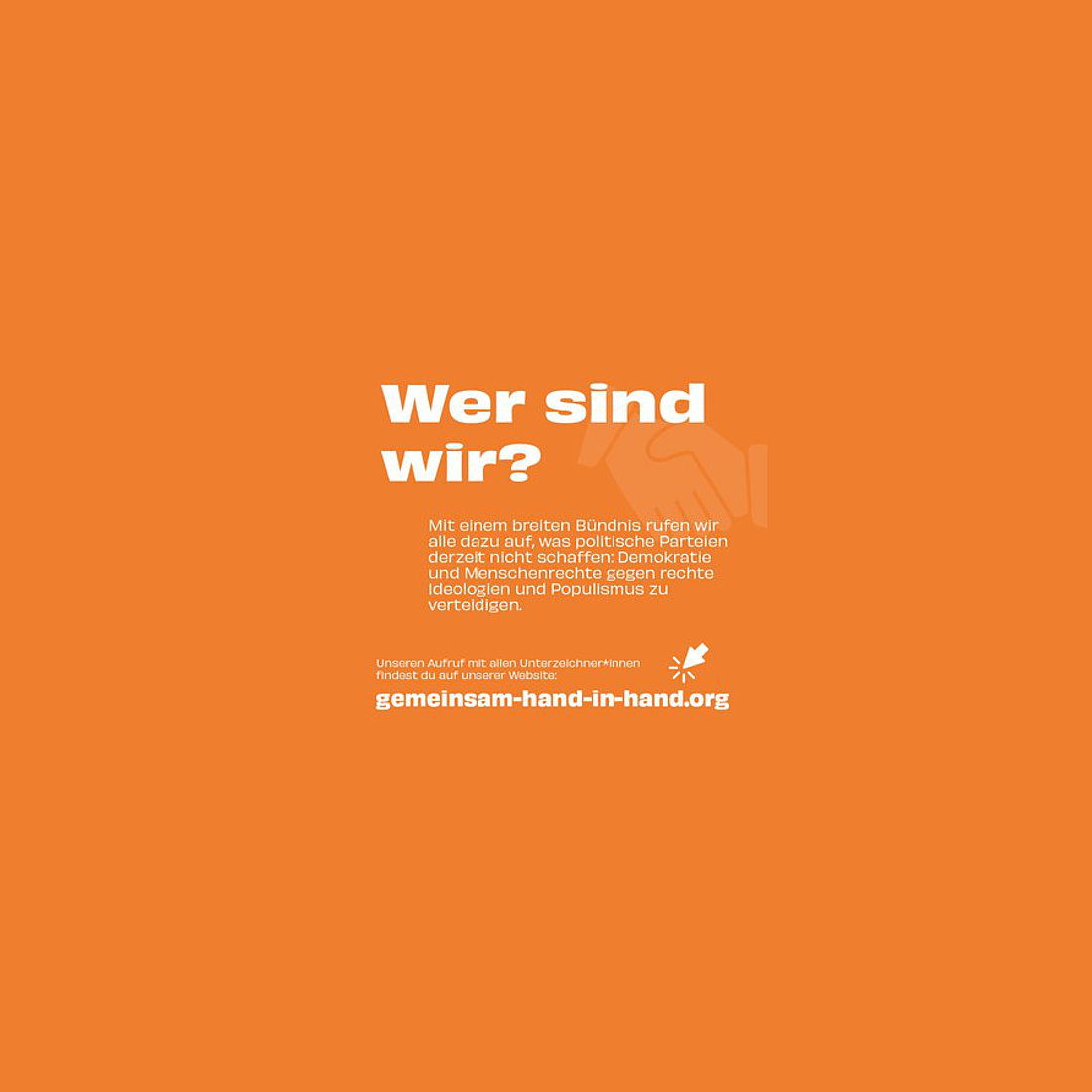 Im Bündnis «Zusammen für Demokratie» treten wir, 69 zivilgesellschaftliche Organisationen, gemeinsam für die unteilbaren Menschenrechte, für soziale Gerechtigkeit und eine klimagerechte Zukunft ein. Uns verbindet die Überzeugung, dass jeder Mensch die gleiche Würde hat. Wir setzen uns ein für das Recht eines jeden Menschen auf ein gutes und friedliches Leben in einer gesunden Umwelt – auf menschenwürdige Arbeitsbedingungen, angemessenen Wohnraum, auf gute Bildung und Gesundheitsversorgung, auf freie Religionsausübung. Die im Grundgesetz verankerte Menschenwürde und der Schutz vor Verfolgung sind für uns nicht verhandelbar.